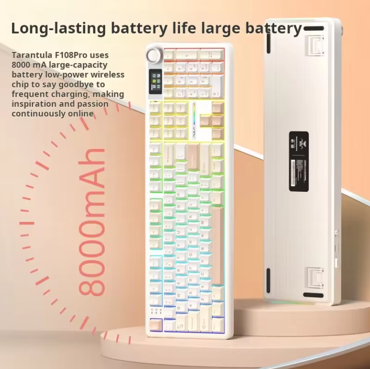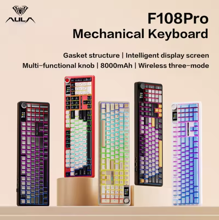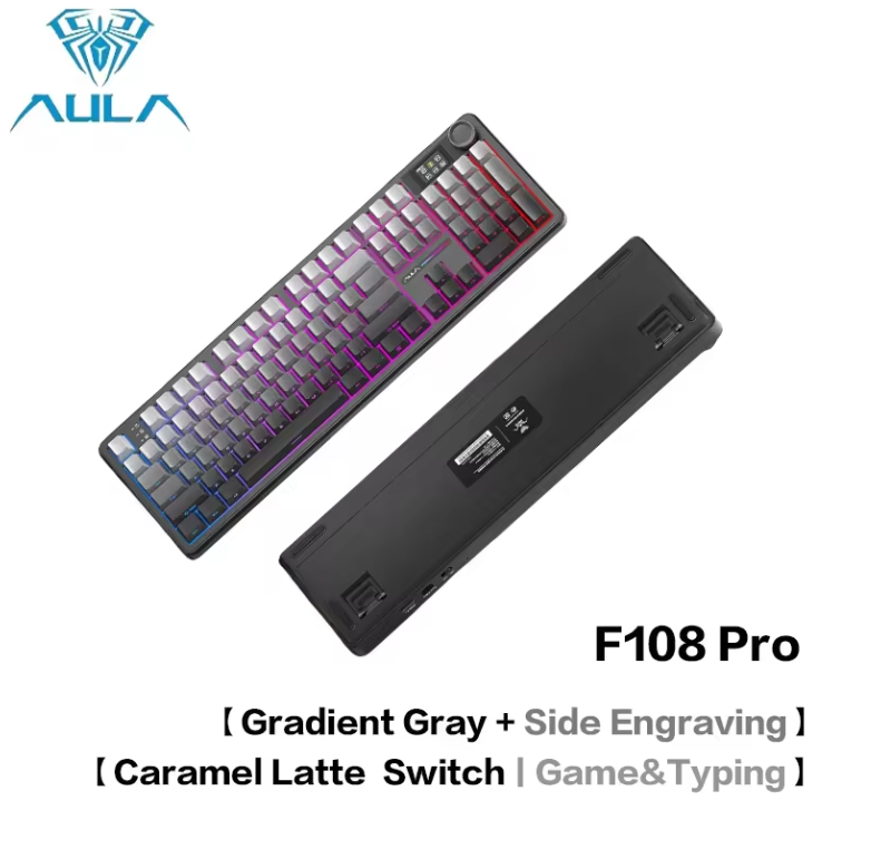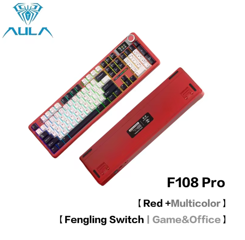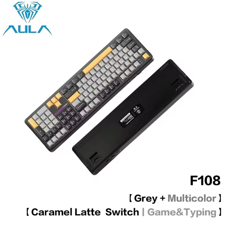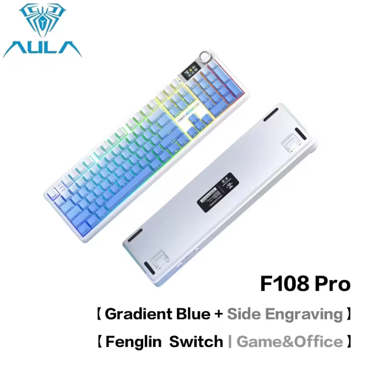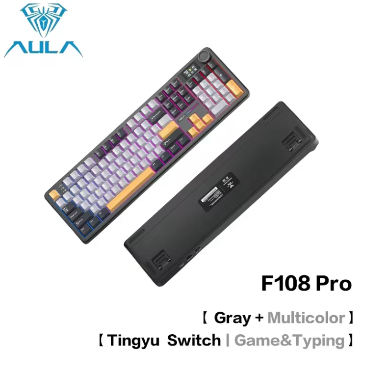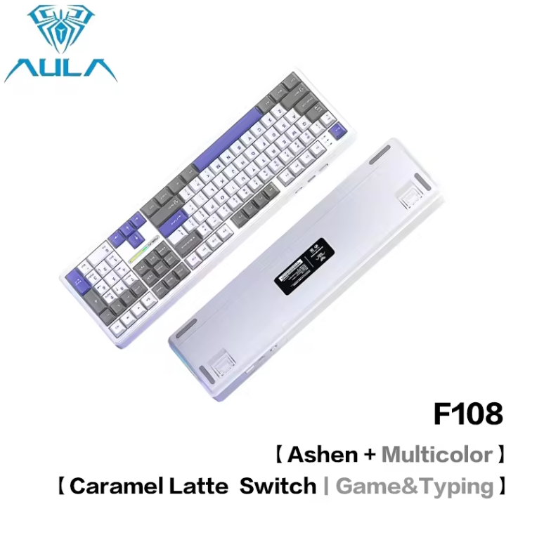 This AULA full-size mechanical keyboard features 104 UK-layout keys crafted from durable PBT plastic for long-lasting use. It supports hot-swappable switches, allowing easy customization without soldering. Equipped with multicolor backlighting and Bluetooth wireless connectivity, it offers versatile compatibility with desktops, laptops, and tablets via USB interface. The keyboard includes a built-in battery for cordless operation and meets CE certification standards, ensuring quality and safety. Ideal for users seeking a reliable, customizable typing experience with expert-level performance.